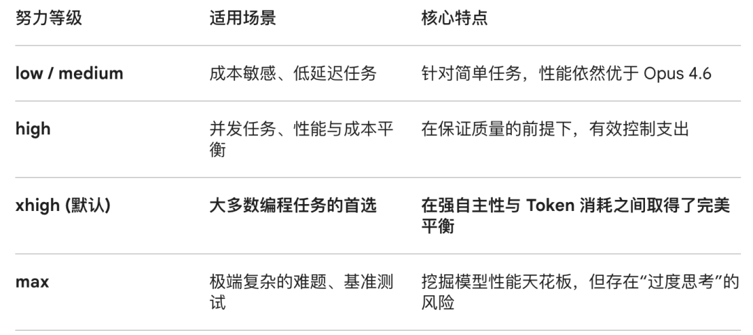 可通过/effort命令在不同等级间切换:低努力程度响应更快、更省Token;