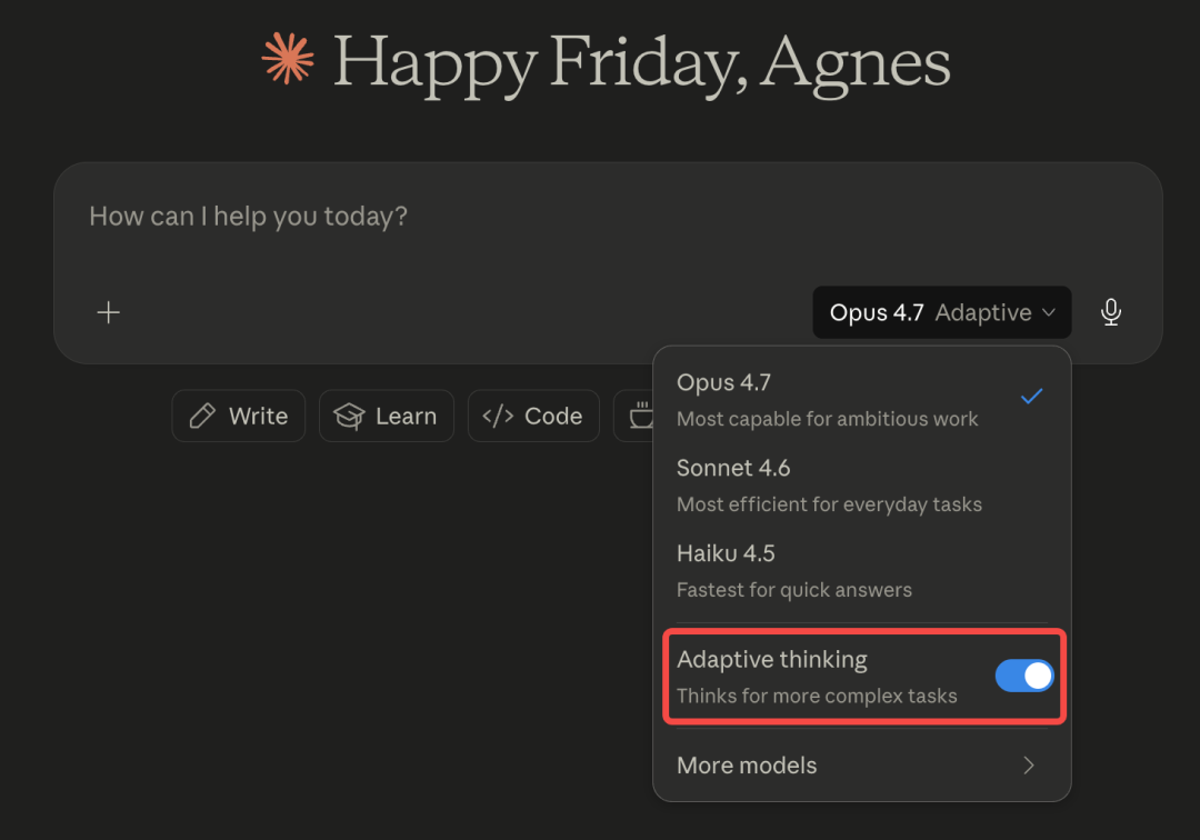 在交互逻辑上,Claude Opus 4.7发生了微妙的变化。