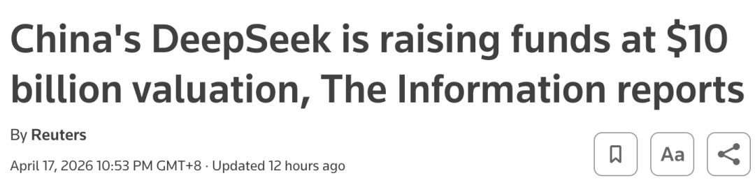 [1]https://www.reuters.com/world/china/chinas-deepseek-is-raising-funds-10-billion-valuation-information-reports-2026-04-17/