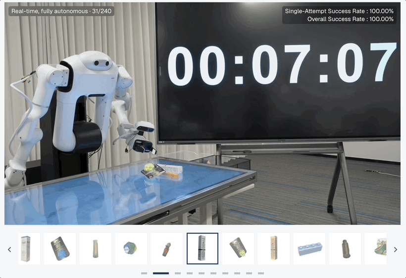 具身机器人在60分钟内,不间断抓取100多个没见过的物体(透明的、金属的、软质的),目前能达到什么水平?