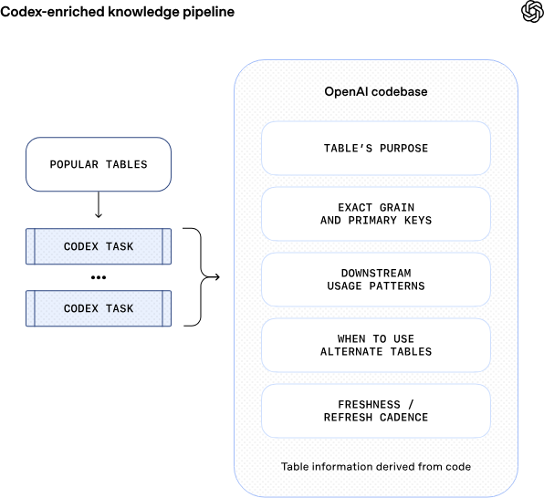 之后的Codex增强通过推导表的代码级定义,让智能体能够更深入地理解数据实际内容。这一层提供了关于值唯一性、表数据更新频率、数据范围等关键信息。这一层的引入,让智能体能够明白不同表在构建,更新上的差异。