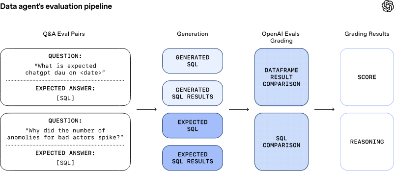 Evals API每个重要问题都配有手动编写的,可作为「黄金标准」查询语句,智能体的表现被持续监控和评分。