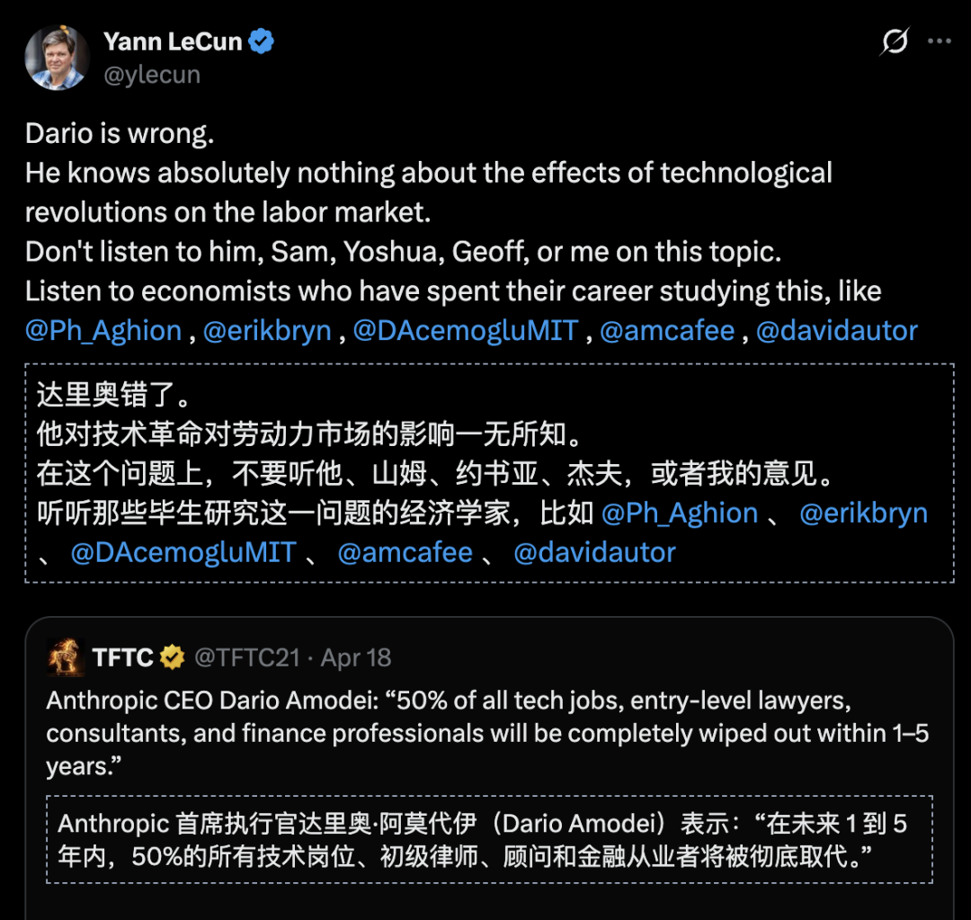 LeCun呼吁大家去听专业经济学家,别听这些AI掌门人忽悠。