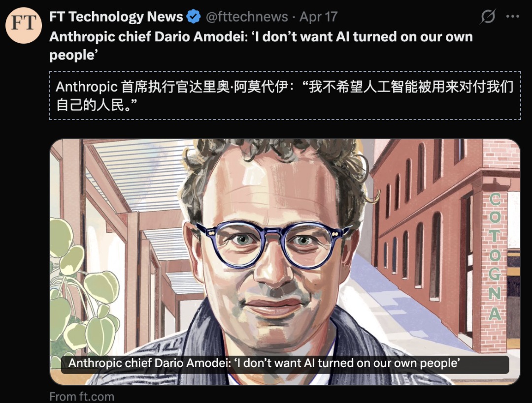 他有技术极客的道德洁癖:拒绝五角大楼将AI用于美国国内的大规模监控,宁愿被美国总统骂作「激进的左翼疯子」。