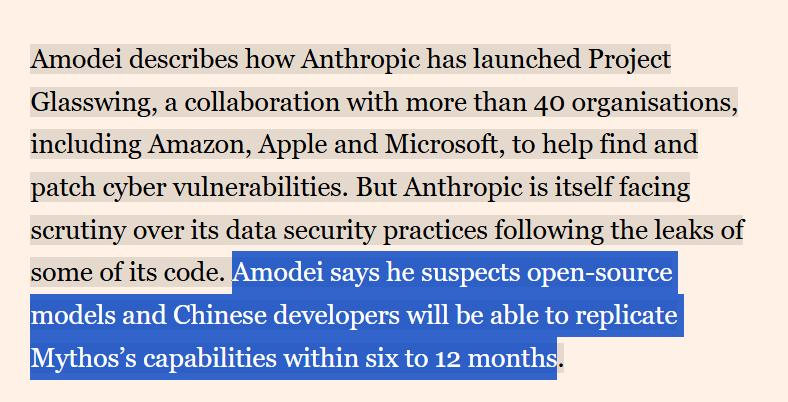 Amodei自己承认,面对大洋彼岸的追赶者,Anthropic的领先身位可能只剩下短短6-12个月。