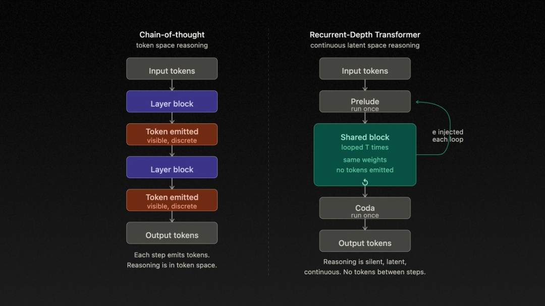 让同一组权重最多反复跑16遍 每次走不同的专家路径 推理全程在潜在空间完成。