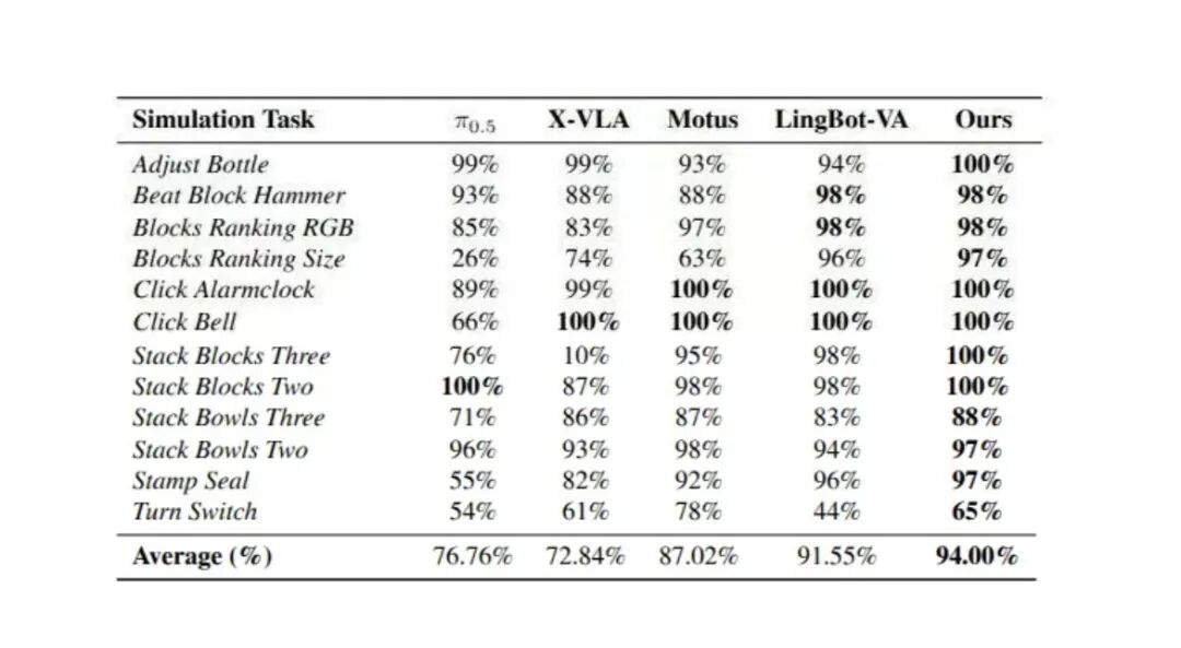 在仿真环境RoboTwin上,DexWorldModel取得了94.00%的平均成功率,超过多项已有基线。