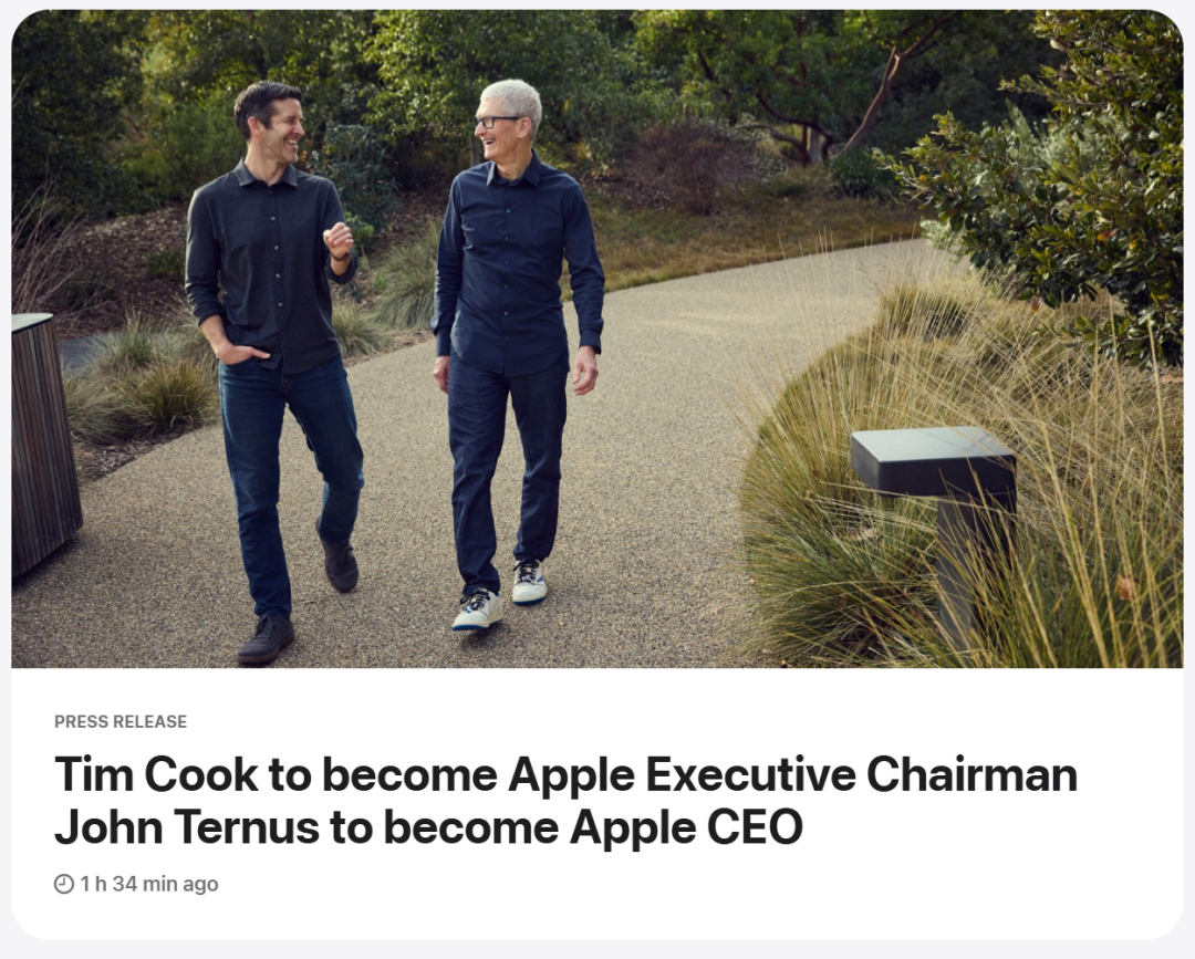 如今,库克的时代谢幕了!他将于9月1日卸任,转为执行董事长。
