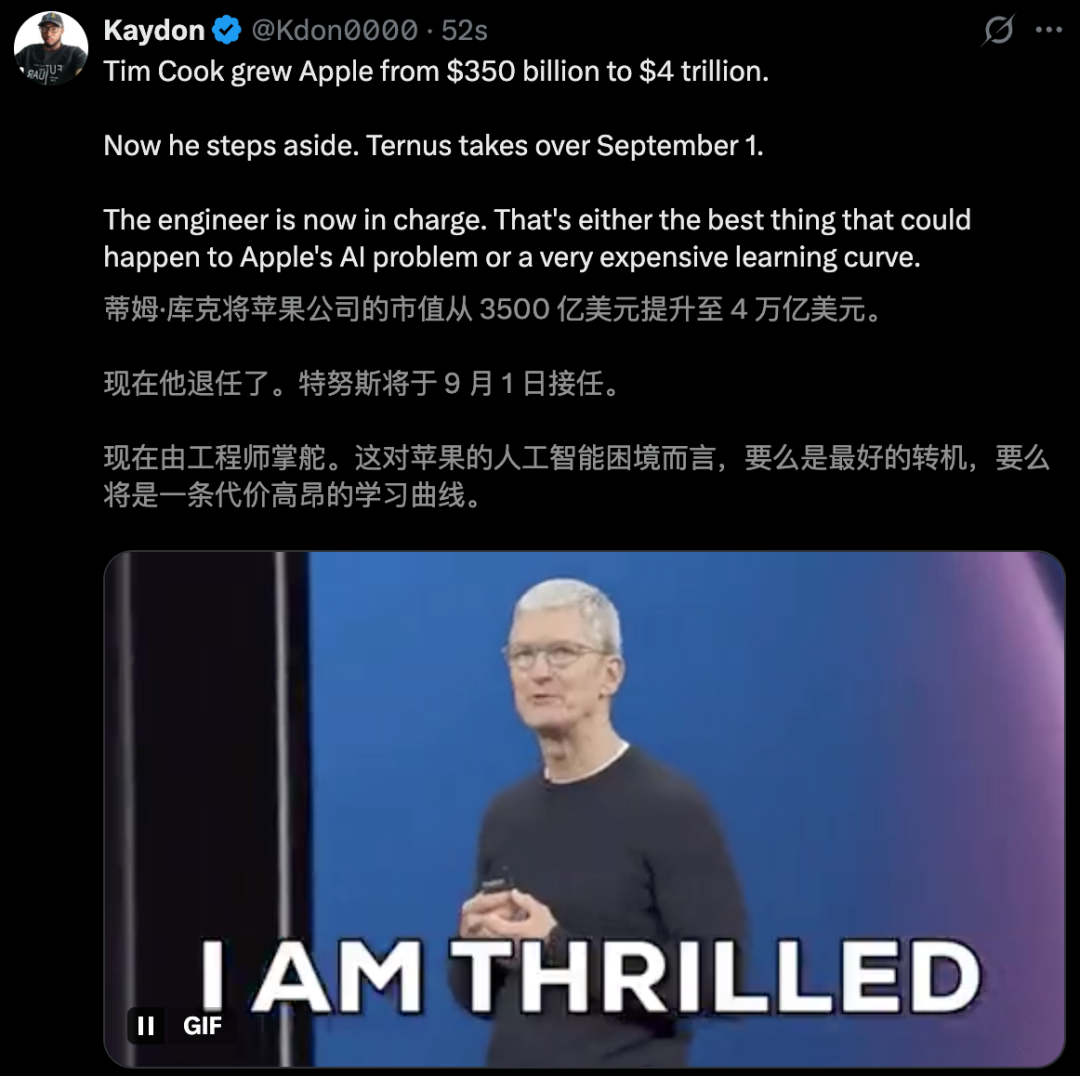 证明在ASI即将重写一切规则的时代,苹果这家靠硬件和生态吃饭的公司,依然有存在的必要。