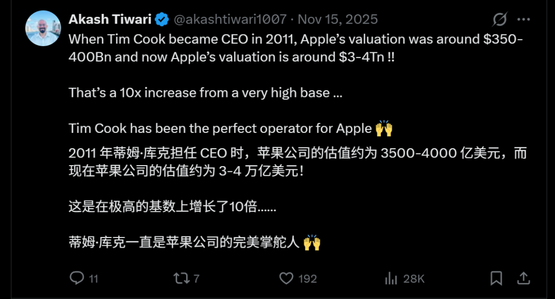 当然也有怪库克导致苹果在AI竞争中落后的……