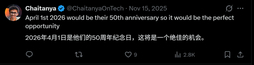 虽然库克本人推特主页暂未更新,但就像网友之前提到的那样,今年刚好是苹果成立50周年的时间。