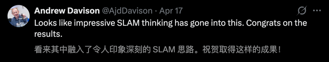 就连SLAM领域的泰斗级人物、帝国理工学院教授Andrew Davison亲自下场点赞——