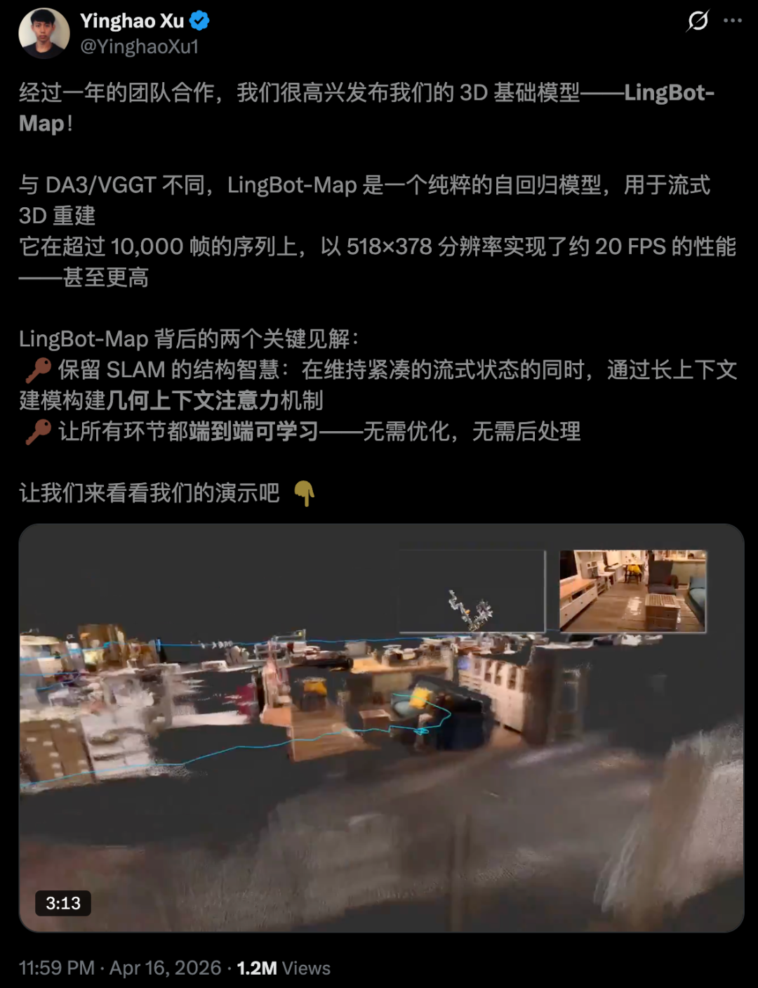 LingBot-Map让机器人真正「看懂」了全世界,它的开源引全网120万人围观。