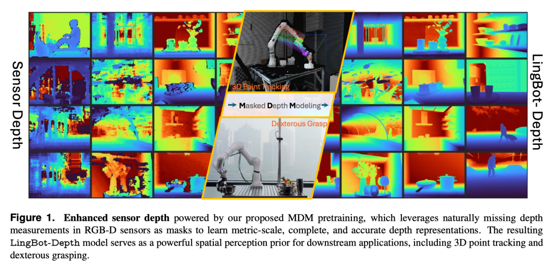 LingBot-Depth用掩码深度建模(MDM)技术解决了这个问题。
