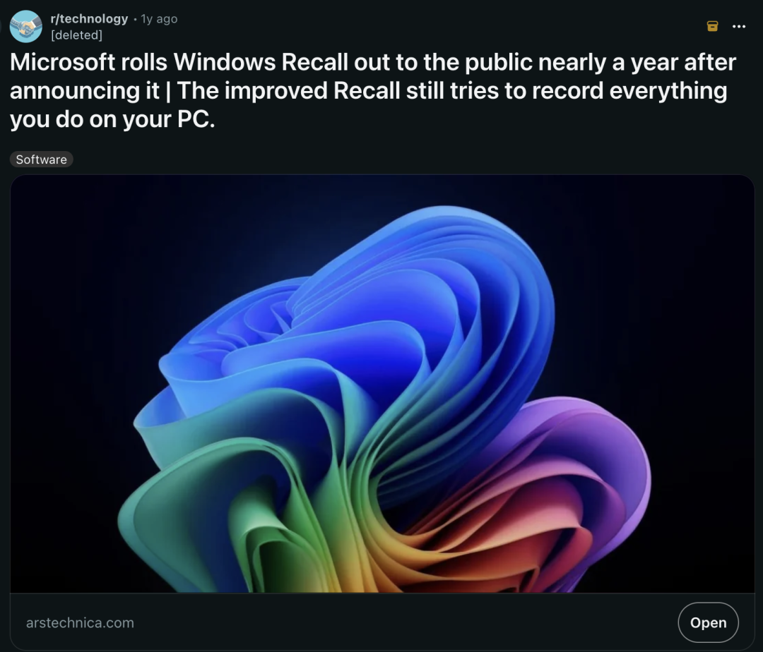 微软的Recall去年闹出隐私风暴,被迫推迟发布。