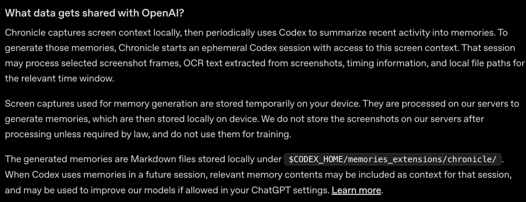 不仅电脑截图会上传到OpenAI的服务器进行内容识别,本地保存的记忆也没有经过加密。