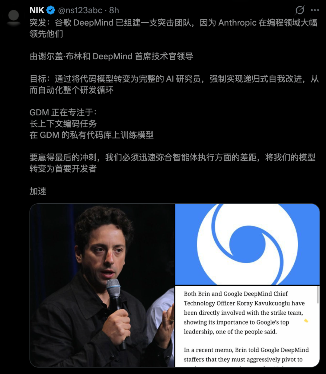 布林此番亲自督战,是他在AGI竞赛中最高调的一次下场。