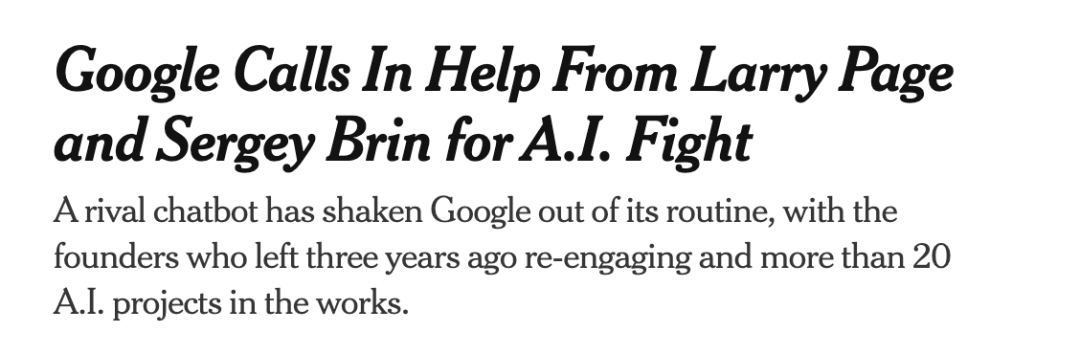 上一次,还是在2023年,谷歌拉响「红色警报」后,请回了拉里佩奇和布林坐镇。