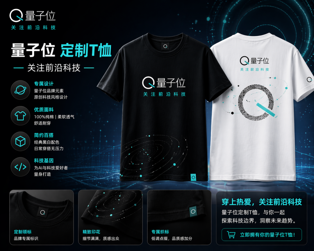 提示词:为科技自媒体量子位设计定制T恤,生成宣传图