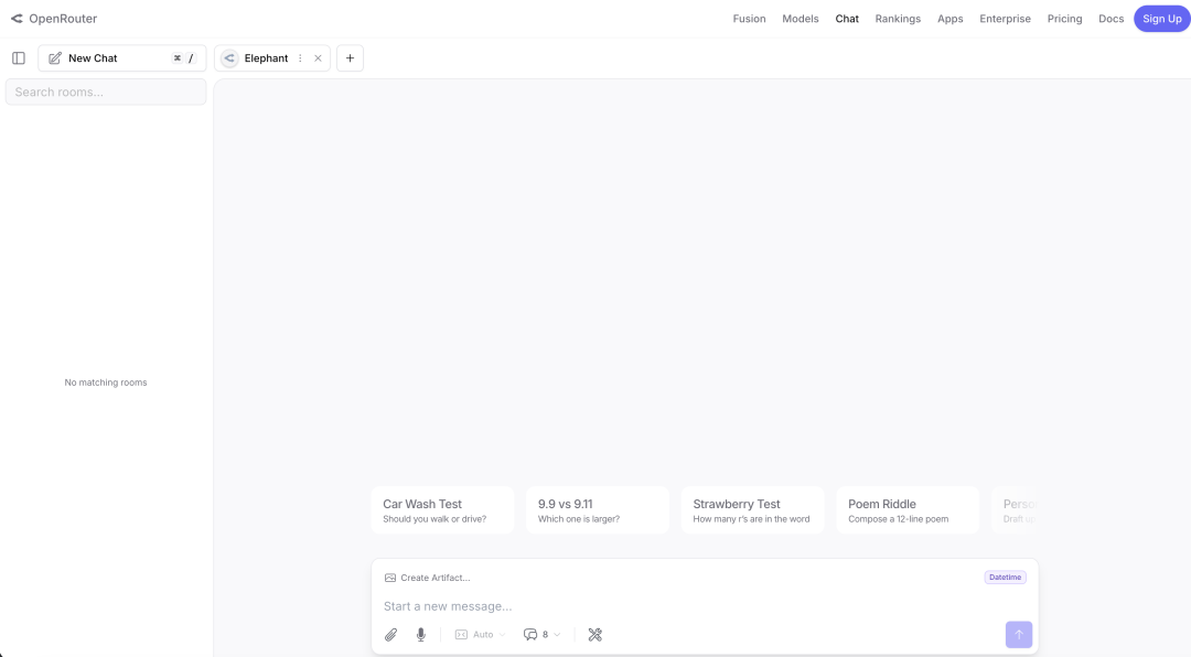 针对「大象」的实测,我们是在OpenRouters上的网页端来展开。