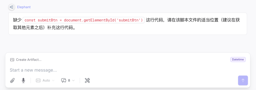 然后我们把这份代码再喂给「大象」,并简单地附上一句:
