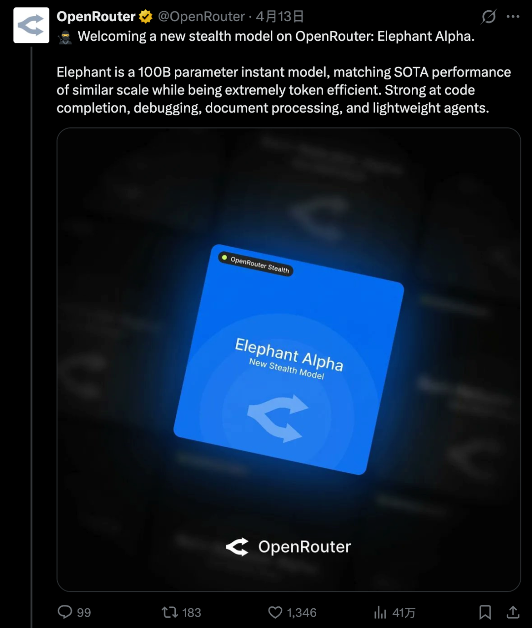 前一阵子OpenRouters在自家官方𝕏上提到了一个神秘模型Elephant Alpha,并且给到的评价是这样的:
