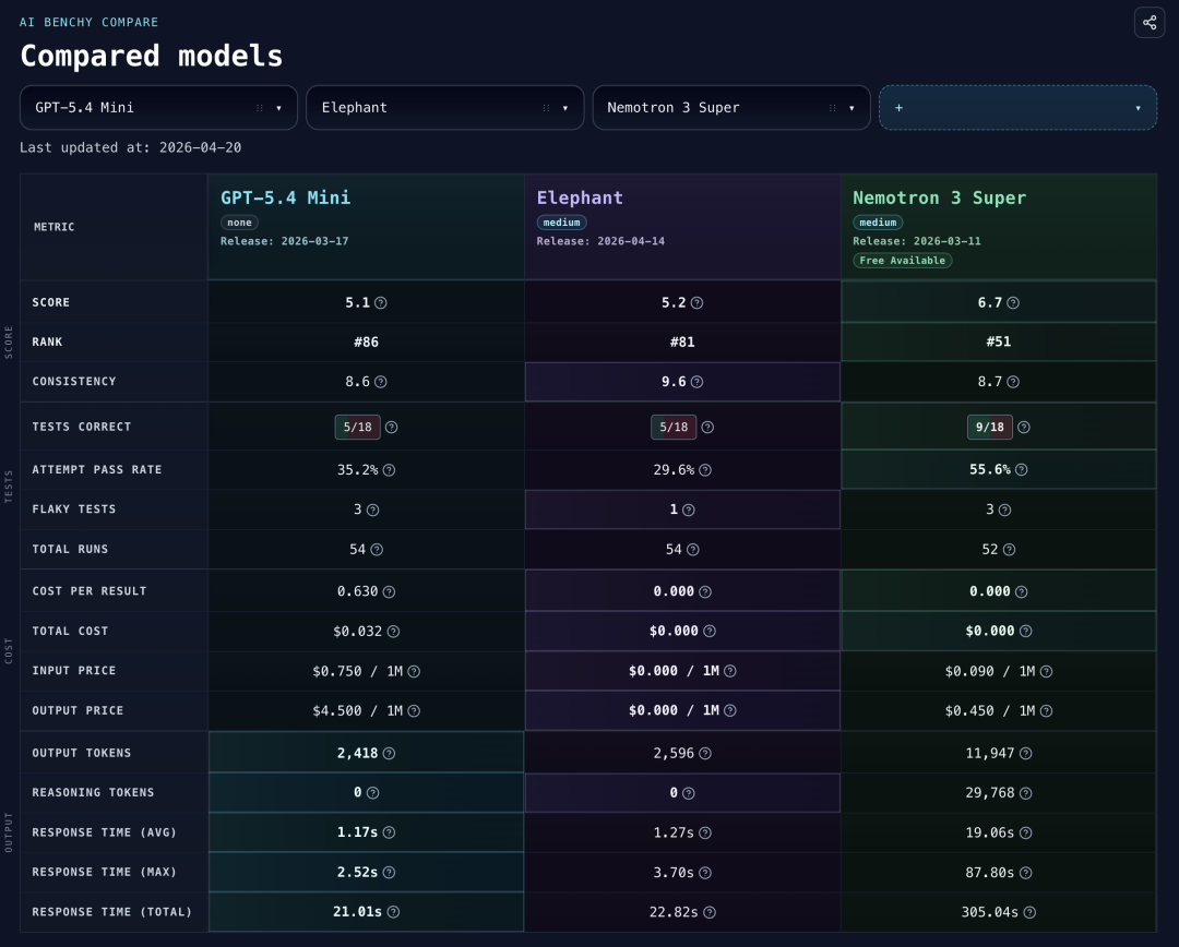从AI BENCHY给出的结果来看,「大象」输出Token维持在了2500左右,说明每一分钱的API算力,都用在了刀刃上。