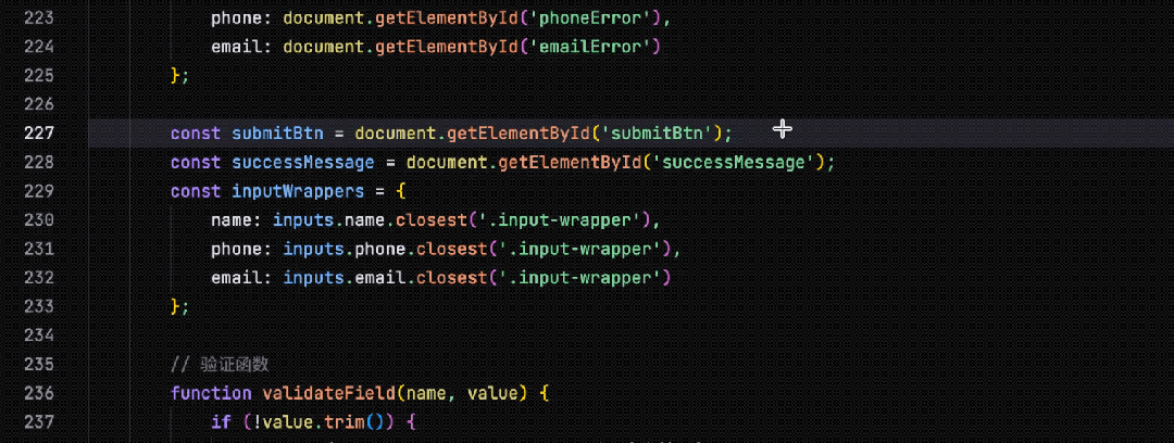 把JS逻辑里定义提交按钮的变量 const submitBtn = document.getElementById(‘submitBtn’) 直接删掉。