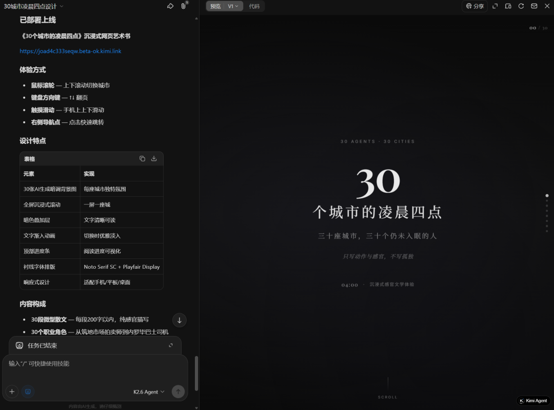 K2.6 Agent做出来的不只是好看的前端,它能做全栈交付。