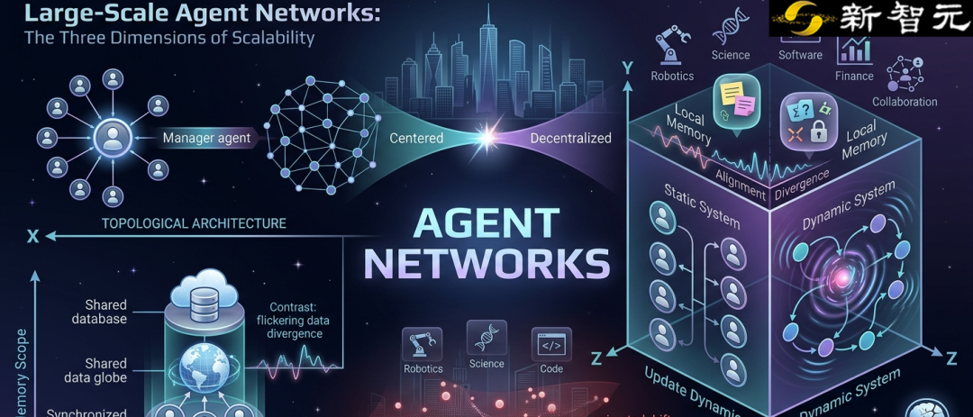 【新智元导读】随着大语言模型(LLM)驱动的多智能体系统快速发展,越来越多的系统被用于软件工程、科学分析、网页自动化、组织协作和社会模拟等任务。但一个核心问题始终没有被系统回答:为什么有些智能体架构可以支持长链条、多步骤任务,而另一些系统在规模扩大后会失稳、低效,甚至失去协调能力?这篇综述试图回答的,正是大规模智能体系统为何能扩展、为何会失稳,以及未来该如何设计更可扩展的系统结构。