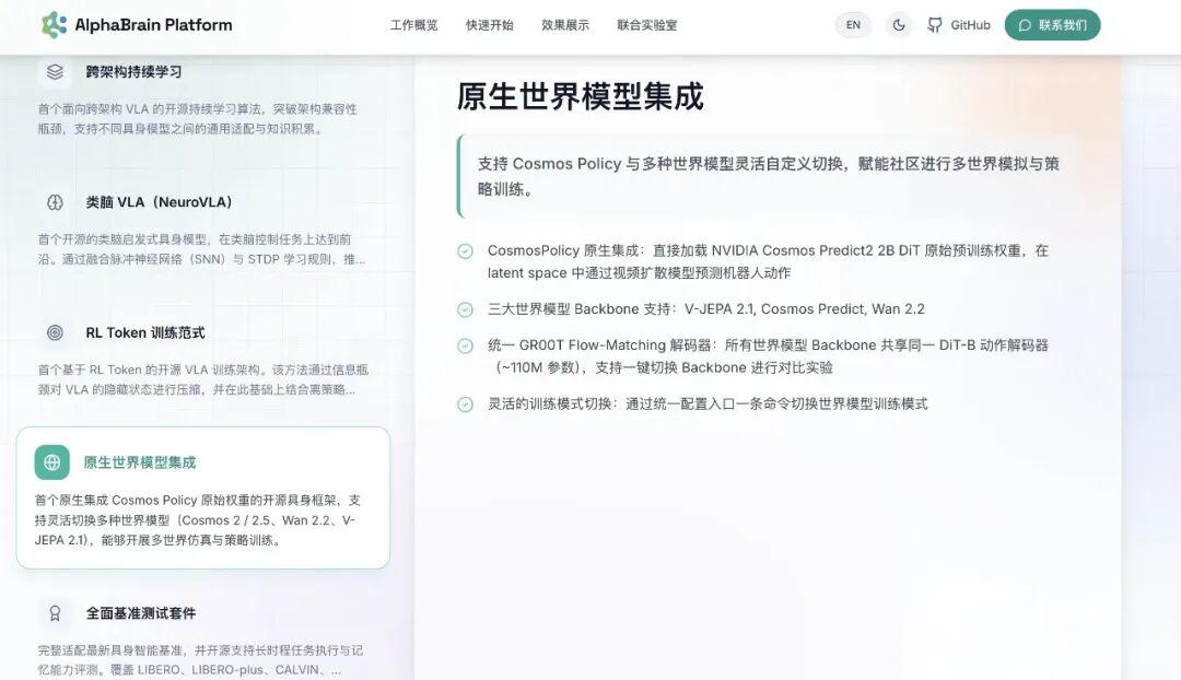 AlphaBrain Platform在这一块做了比较系统的工程化工作:把CL从“单模型上的研究玩具”推向多架构可复现的对比平台。