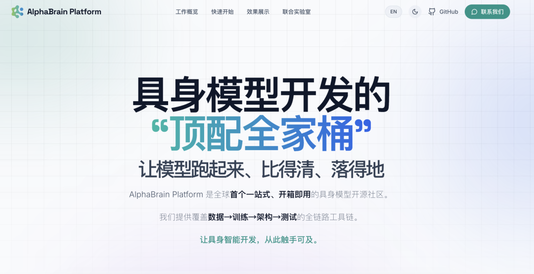 4月22日,智平方发布AlphaBrain Platform开源社区。这是全球首个一站式、开箱即用的具身智能模型开源社区。