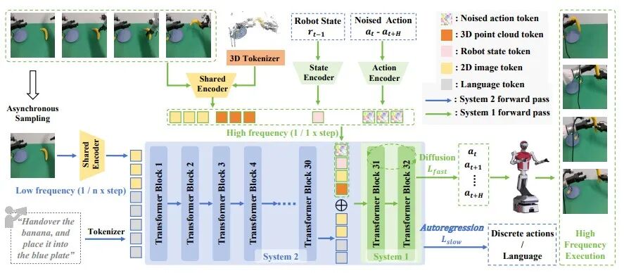 到了2025年7月,智平方推出了快慢系统深度融合的新一代VLA架构,这是业内首个“异构输入+异步频率”的双系统VLA模型,性能直接超越国际标杆Pi0达30%。