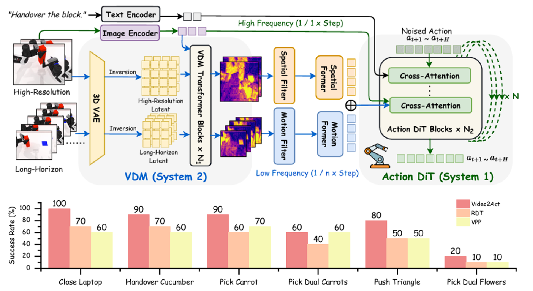 基于这一前瞻认知,AlphaBrain在2025年11月吸纳了新一代架构Video2Act的最新成果——实现“先预测、后执行”。