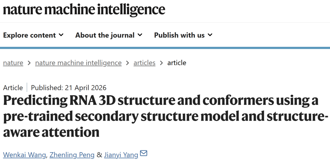 Wang, W., Peng, Z. & Yang, J. Predicting RNA 3D structure and conformers using a pre-trained secondary structure model and structure-aware attention. Nat Mach Intell (2026).
