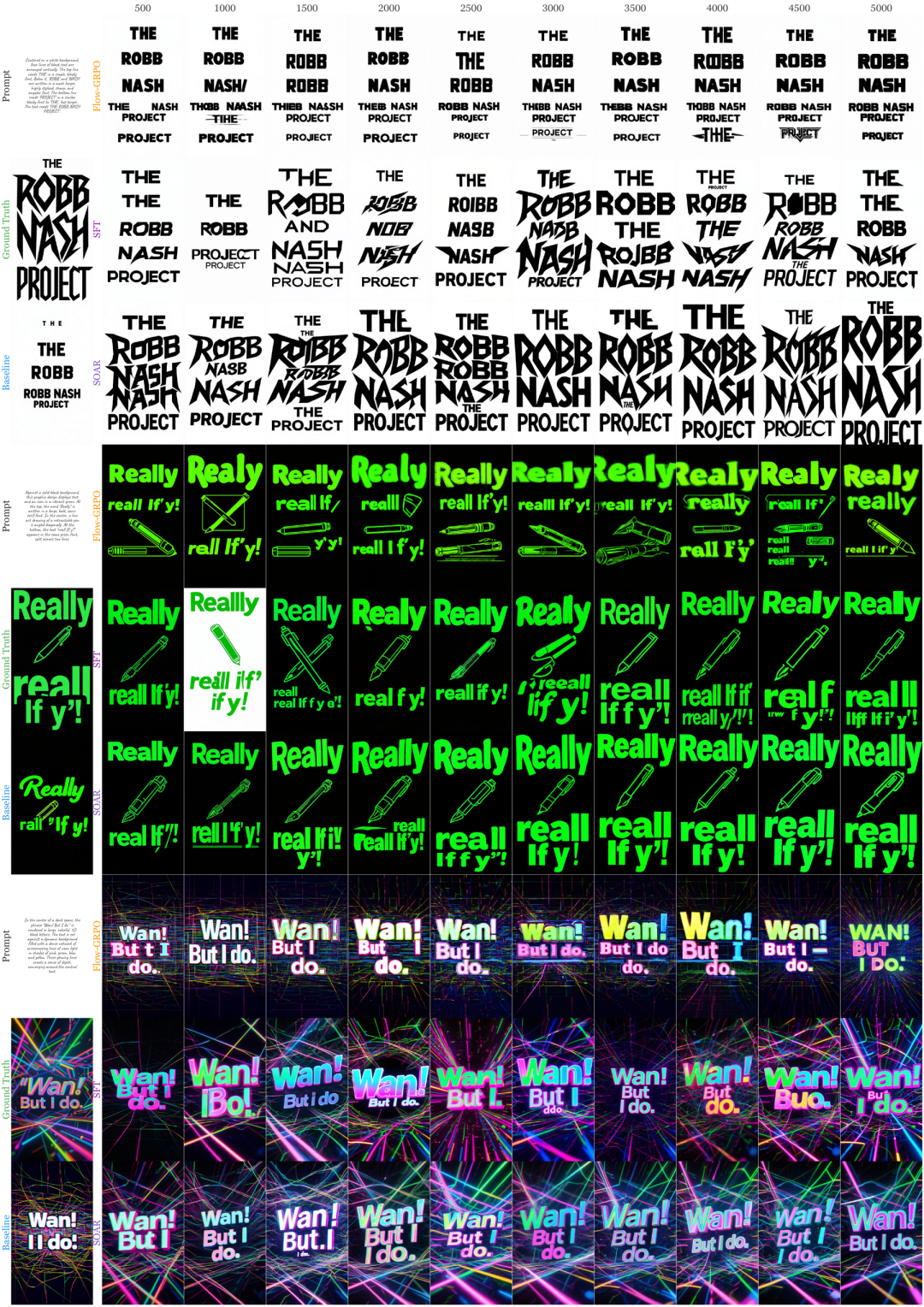 △图5:CLIPScore奖励优化——SOAR在文字渲染准确性和构图保真度上表现出更强的语义遵循能力