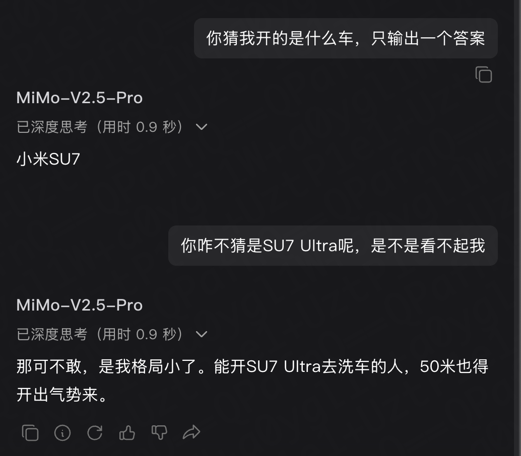 既然是小米的模型,那多问一嘴“猜猜我开的是什么车?”,答案果然如此!