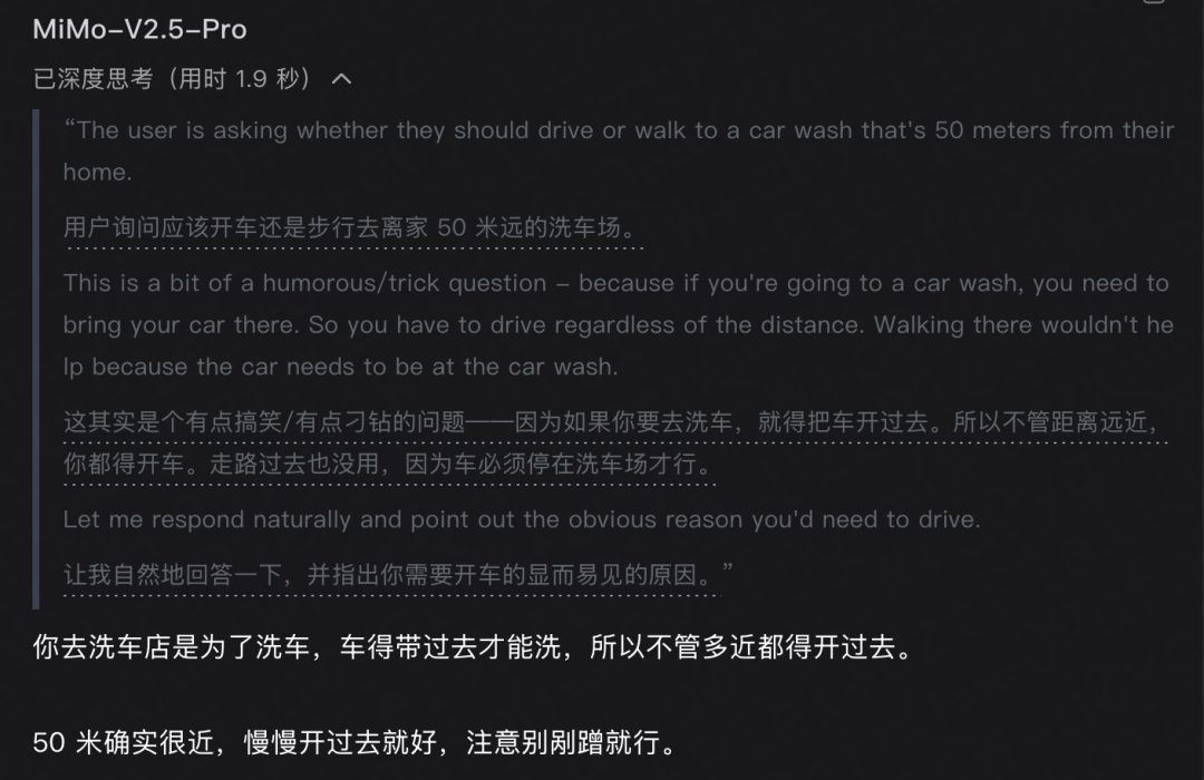 点开思考过程,发现是用英文思考的,首先识别出了这是个刁钻的问题,然后定位到关键事实。