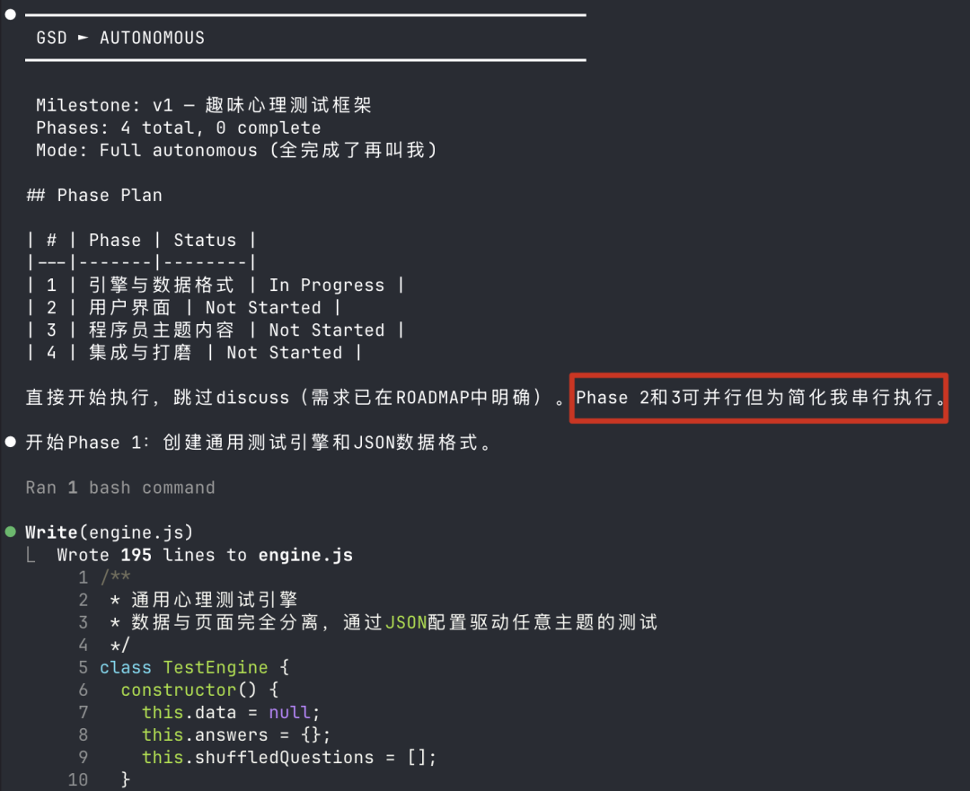 接下来如果是个大项目,可以按照GSD框架的提示清理上下文,并一步一步执行。