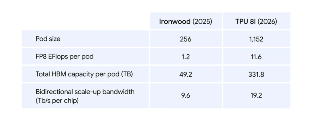 面向推理的TPU 8i:在成本不变的情况下,能让服务能力翻倍。