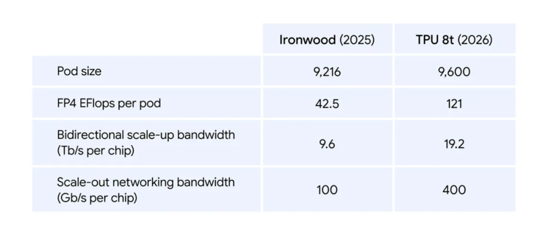对比上一代Ironwood,8t直接把「规模、效率、稳定性」三件事一起拉满了: