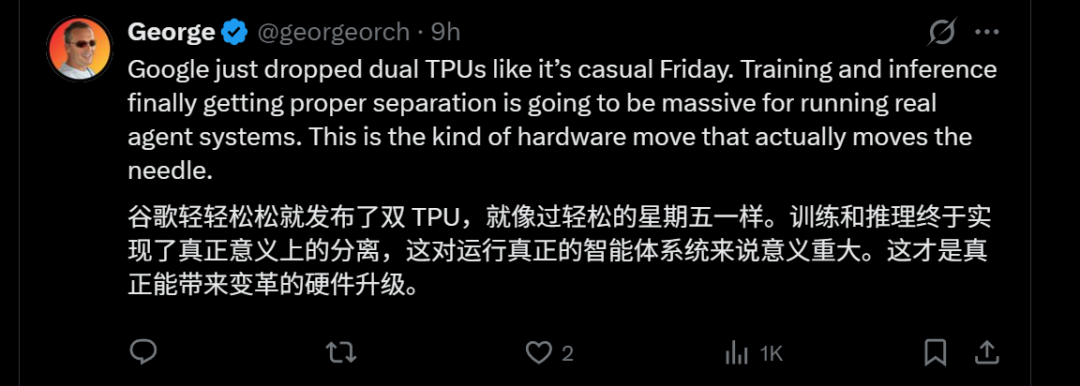 也正因此,这次第8代TPU一发布,就在𝕏引发了不小的讨论: