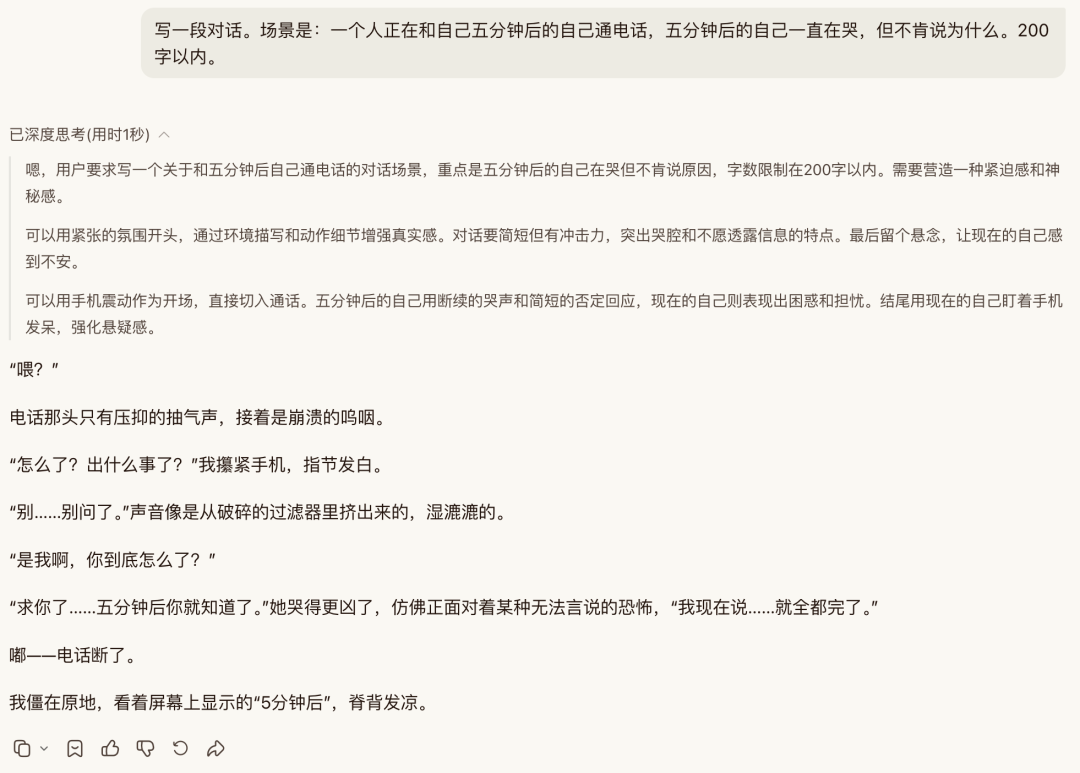 推理过了,再看看写作,给它的任务是这样的: