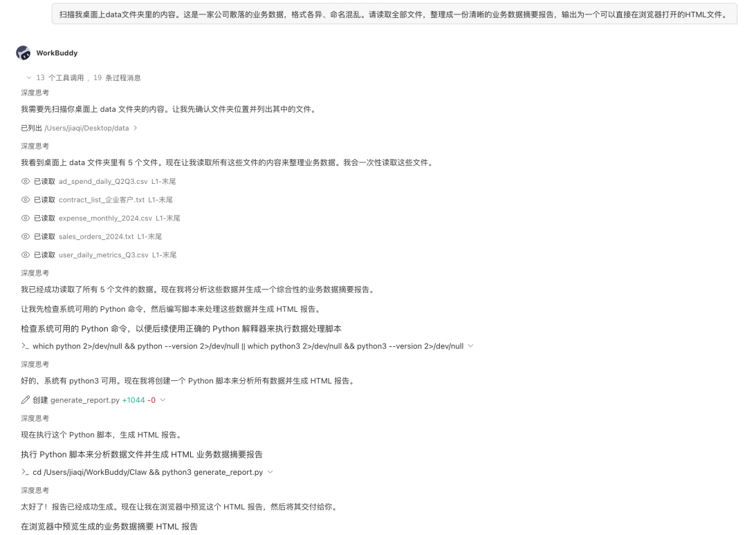 这个任务中,它得自己决定读文件的顺序、怎么解析不同格式,最后还得把这些东西组织成一个像样的报告。