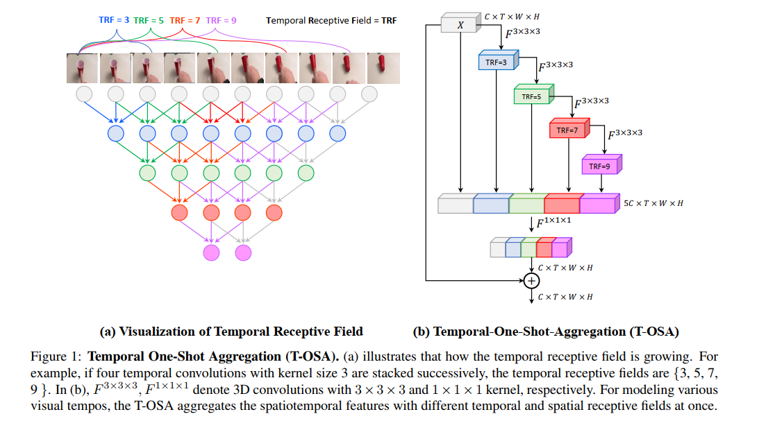 论文标题:Diverse Temporal Aggregation and Depthwise Spatiotemporal Factorization for Efficient Video Classification 论文链接:https://arxiv.org/abs/2012.00317 代码链接:https://github.com/youngwanLEE/VoV3D 作者单位:韩国电子通信研究院 3D 时间建模新架构,由时间one-shot聚合(T-OSA)模块和深度分解因子D(2 + 1)D组成,表现SOTA!性能优于X3D、SlowFast和TEA等,代码刚刚开源!