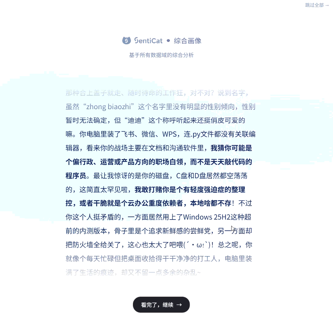由于我的电脑实在太干净,最后它给我的综合画像是: