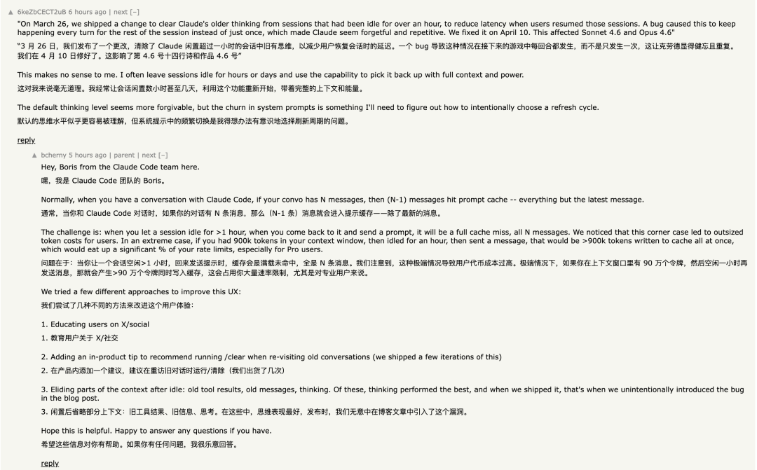 有人觉得出bug可以理解,postmortem写得也算透明。Boris在HN一条一条回复,这比大多数公司做得好。