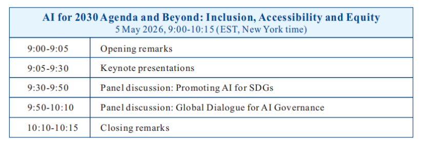 会议主题:人工智能助力2030议程及未来:包容性、普惠性与公平性(AI for 2030 Agenda and Beyond: Inclusion, Accessibility and Equity)