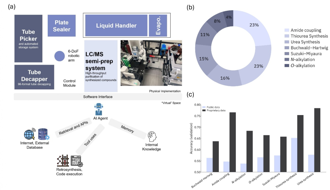 • 文献检索工具 • 逆合成规划 • 代码执行引擎 • 内部知识库(整合实验结果与广泛化学知识)