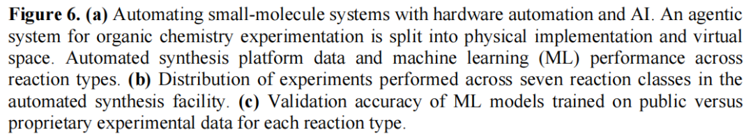 自驱实验室(Self-Driving Laboratories) 将LLM控制器嫁接于实验室仪器套件(机械臂等),实现从假说生成到实验执行的端到端自主化。未来愿景:给定一个靶点或假说,实验室可 7×24小时 连续设计并执行实验,从单步反应扩展至全流程多步合成和并行生物测定,云端连接的实验室持续评估假说,将科学家从例行实验室工作中解放出来。